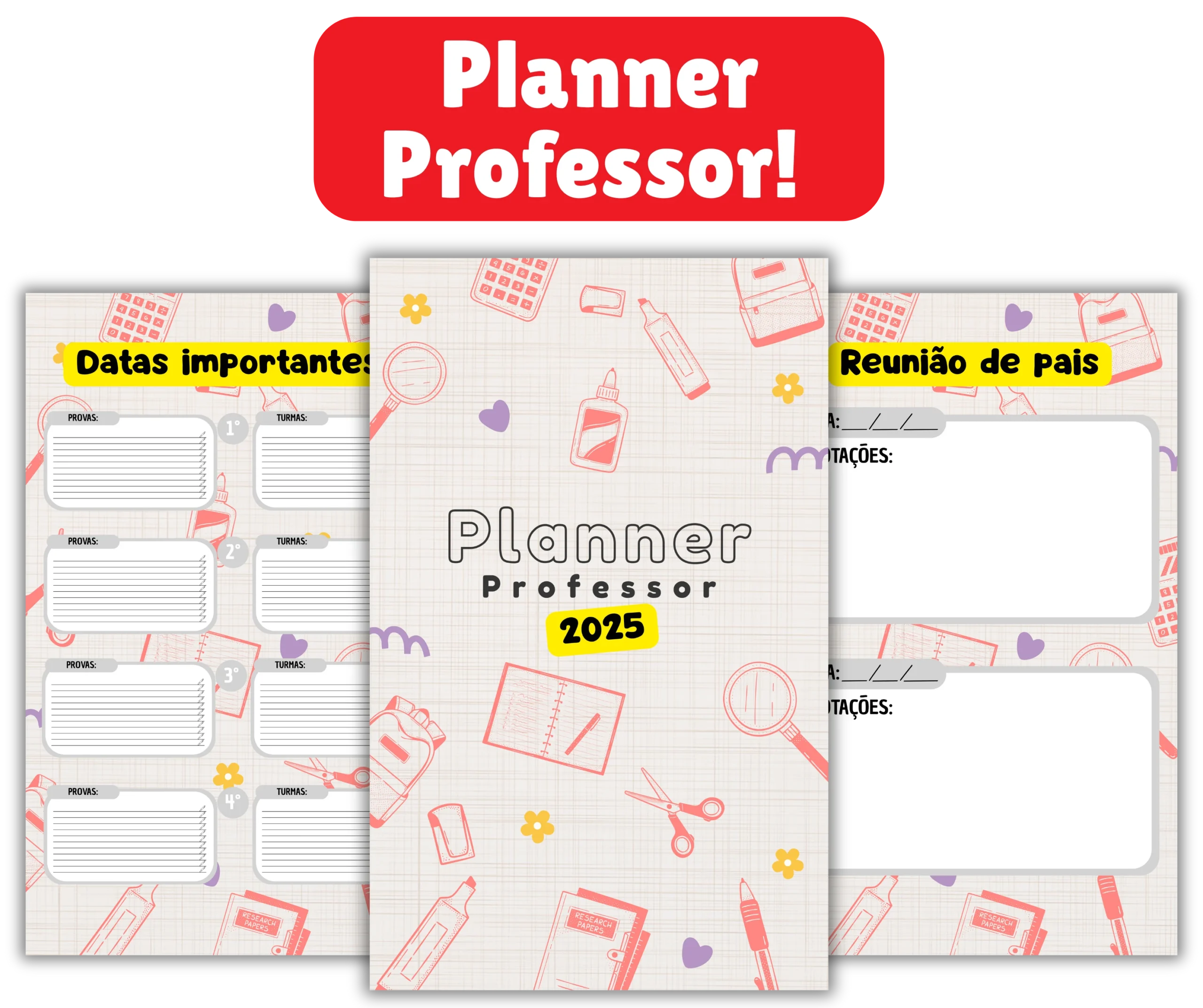 Tenha mais controle da sua rotina escolar! Um planner exclusivo para professores planejarem horários, compromissos, metas e atividades de forma prática e organizada.